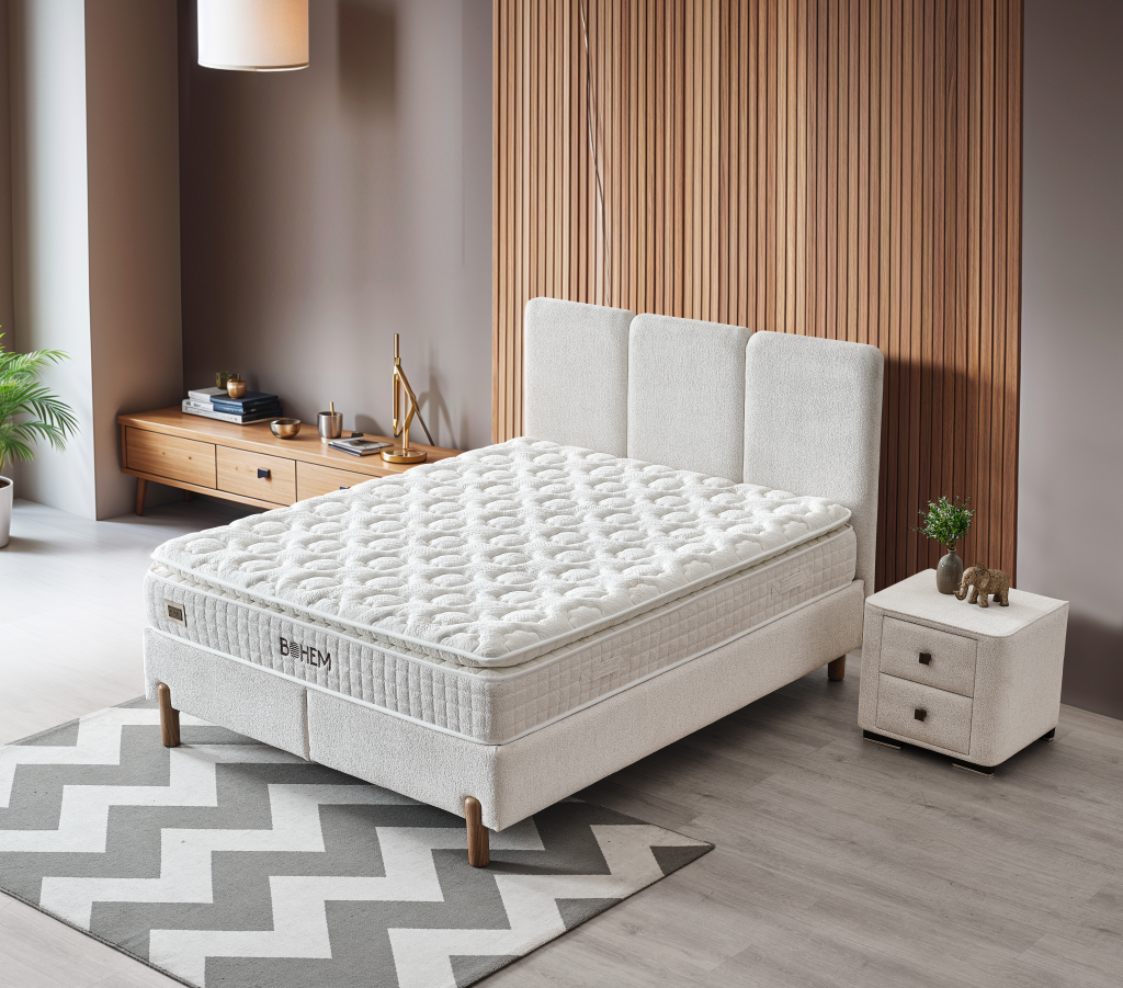 Anatomska oblikovana vzmetnica BOHEM spada v skupino srednje trdih vzmetnic, katere jedro je sestavljeno iz kakovostnega žepkastega vzmetenja . Lastnost žepkastega vzmetenja je v tem, da je vsaka vzmet, zavita v tkanino oz. žepek, in so s tem vzmeti med seboj neodvisne. S tem je omogočeno prosto premikanje, kjer se vibracije ne prenašajo po celotni površini vzmetnice, temveč zgolj na točki pritiska. To omogoča boljše prilagajanje anatomiji telesa, ter raven in neobremenjen položaj hrbtenice. Vzmetnica BOHEM nudi visoko udobje in prilagajanje telesu, zračnost, čvrstost in elastičnost. Za boljši spanec ima vzmetnica vgrajen dodaten nadvlože. V vzmetnice BOHEM iz naše ponudbe je vloženo veliko ročnega dela in truda posameznika, zato so vzmetnice vrhunske kakovosti.