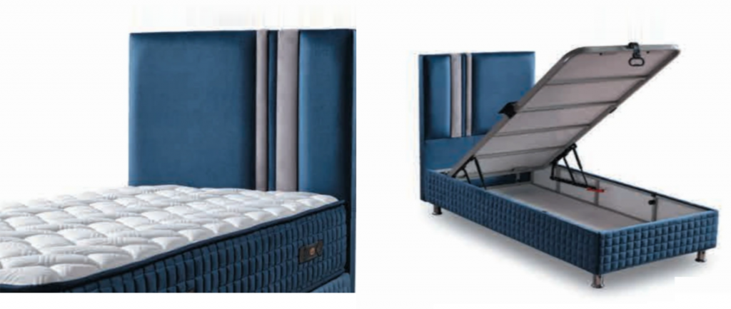 Postelja z dvižnim dnom nudi dodaten prostor za shranjevanje. Stabilnost postelje omogoča trdnost same baze, ki preprečuje premikanje. Vzmetnica telesu nudi odlično podporo, kvalitetna prešita tkanina pa omogoča večjo zračnost in odvajanje vlage. Vzmetnica ima obojestransko uporabo.
