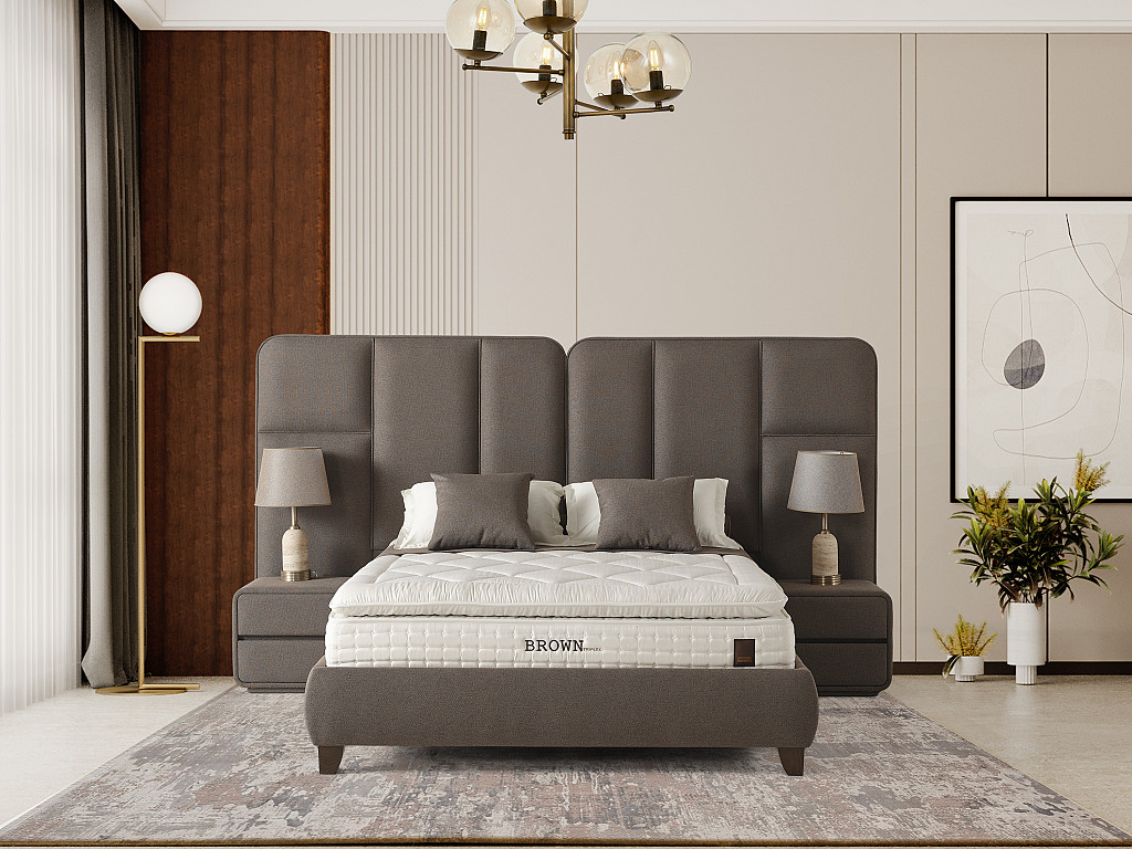 Izrazit, kvaliteten in dominanten posteljni okvir DUBLIN z dvižnim dnom in predalom, izdelan za hotelske potrebe svetovnih hotelskih verig visokih kategorij, zagotavlja zanesljivost in trdnost ter navdušuje s svojim dizajnom. Bogato in elegantno vzglavje ter nenavadna konstrukcija sta njeni glavni značilnosti. Višina vzglavja: 153 cm širina 287 cm .Vzglavje in dno postelje je dobavljivo v 2 delih, zaradi lažjega vnosa v vaš prostor; Višina posteljnega dna je 36 cm.( nogice 10 cm+ box 26 cm skupaj 36 cm). Dvižno dno je kovinsko, ima trdno ravno površino, oblečeno v črno nedrsečo podlago / tkanino na katero se postavi vzmetnica. Dvižni plinski mehanizem ima dodatna varovala proti nenadnem zaprtju, ko je dno postelje dvignjeno. Postelja z dvižnim dnom nudi dodaten prostor za shranjevanje. Stabilnost postelje omogoča trdnost same baze, ki preprečuje premikanje. Postelja in nočne omarice imajo višino nogic na sliki 4 cm. V kolikor žeite pa je to možno spremeniti na 7,5 cm oz. 10 cm oz 12 cm. Nočni omarici sta vključene v ceno izdelka, dimenzije: š:50 x v 45 cm x g 42 cm. Nočna omarica ima 2 predala na kovinskih vodilih. Možen je tudi napuk postelje brez nočnih omaric. Tabure dimenzije š 126 cm x g 48 CM x v 49 cm za doplačilo cena 289 eur