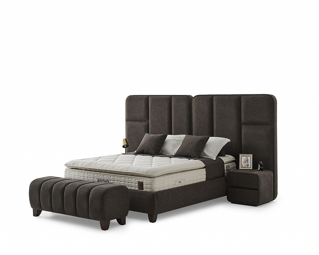 Izrazit, kvaliteten in dominanten posteljni okvir DUBLIN z dvižnim dnom in predalom, izdelan za hotelske potrebe svetovnih hotelskih verig visokih kategorij, zagotavlja zanesljivost in trdnost ter navdušuje s svojim dizajnom. Bogato in elegantno vzglavje ter nenavadna konstrukcija sta njeni glavni značilnosti. Višina vzglavja: 153 cm širina 307 cm .Vzglavje in dno postelje je dobavljivo v 2 delih, zaradi lažjega vnosa v vaš prostor; Višina posteljnega dna je 36 cm.( nogice 10 cm+ box 26 cm skupaj 36 cm). Dvižno dno je kovinsko, ima trdno ravno površino, oblečeno v črno nedrsečo podlago / tkanino na katero se postavi vzmetnica. Dvižni plinski mehanizem ima dodatna varovala proti nenadnem zaprtju, ko je dno postelje dvignjeno. Postelja z dvižnim dnom nudi dodaten prostor za shranjevanje. Stabilnost postelje omogoča trdnost same baze, ki preprečuje premikanje. Postelja in nočne omarice imajo višino nogic na sliki 4 cm. V kolikor žeite pa je to možno spremeniti na 7,5 cm oz. 10 cm oz 12 cm. Nočni omarici sta vključene v ceno izdelka, dimenzije: š:50 x v 45 cm x g 42 cm. Nočna omarica ima 2 predala na kovinskih vodilih. Možen je tudi napuk postelje brez nočnih omaric. Tabure dimenzije š 126 cm x g 48 CM x v 49 cm za doplačilo cena 289 eur