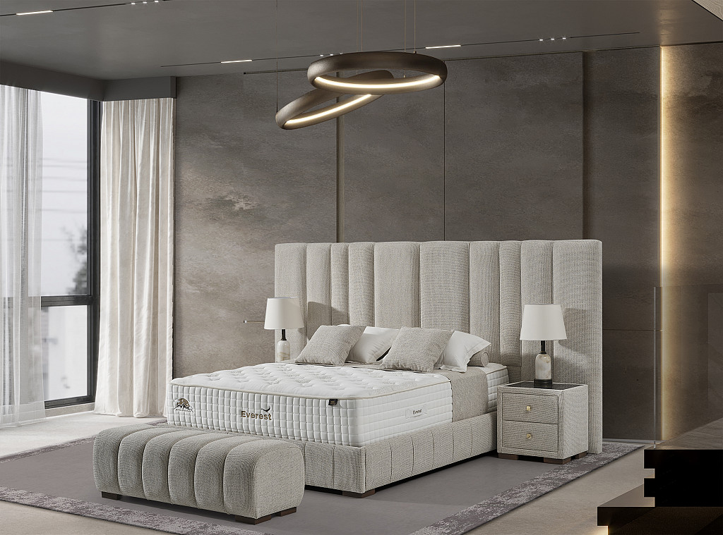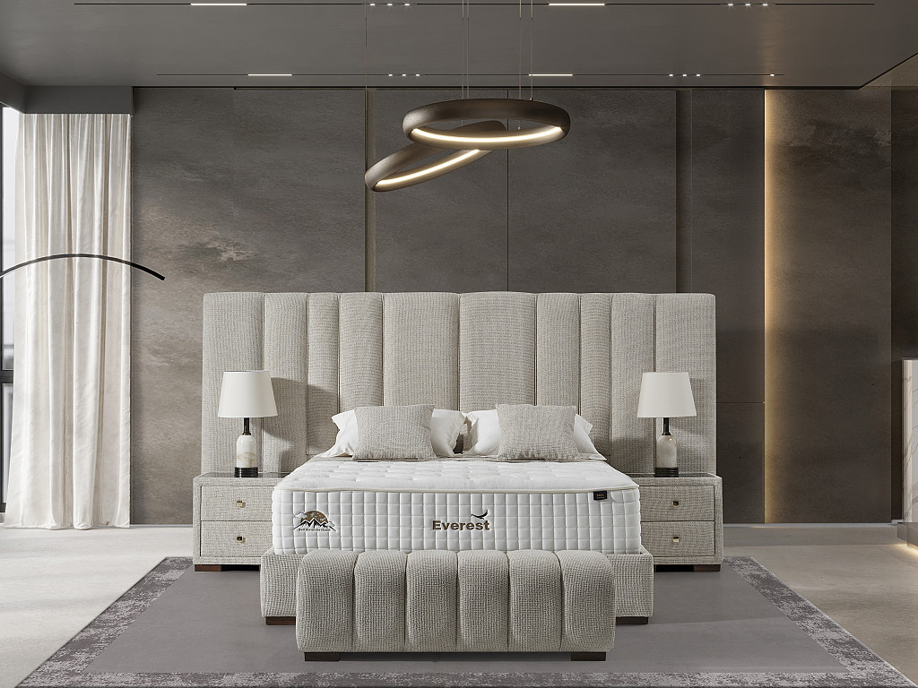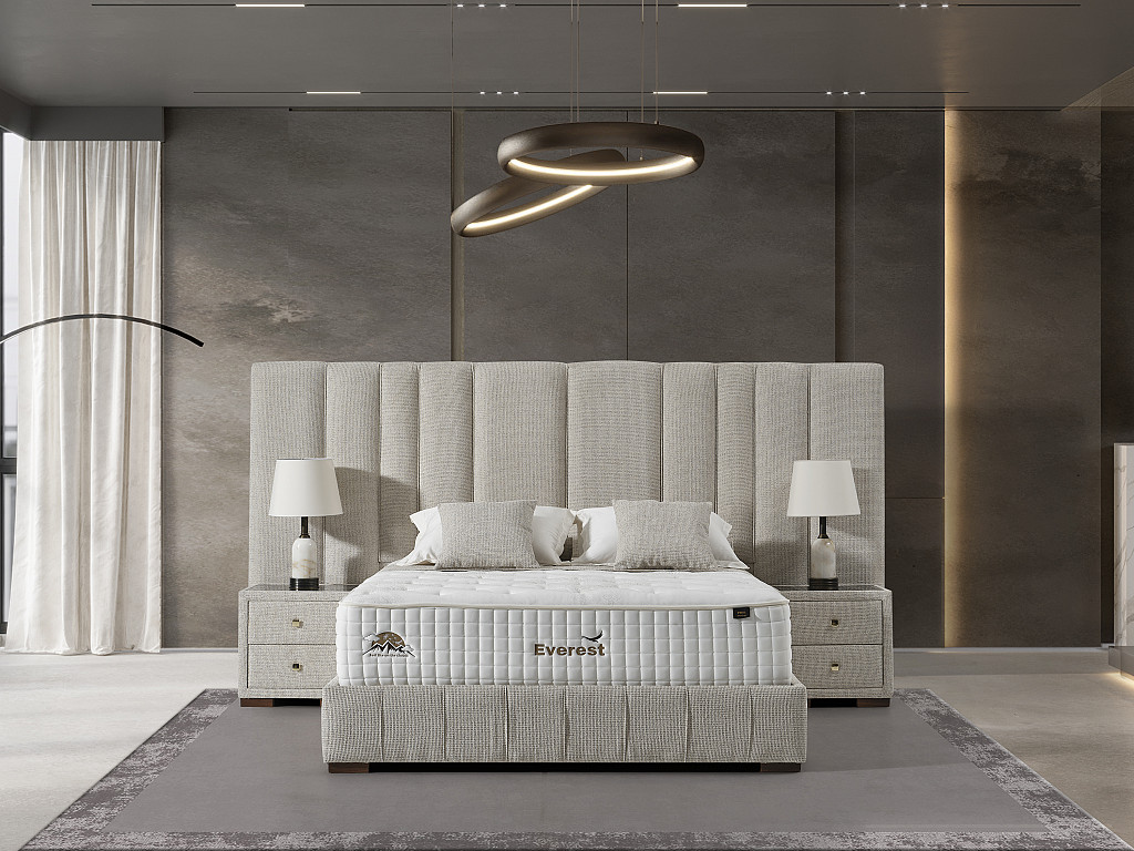 Izrazit, kvaliteten in dominanten posteljni okvir Montana z dvižnim dnom in predalom, izdelan za hotelske potrebe svetovnih hotelskih verig visokih kategorij, zagotavlja zanesljivost in trdnost ter navdušuje s svojim dizajnom. Bogato in elegantno vzglavje ter nenavadna konstrukcija sta njeni glavni značilnosti. Višina vzglavja: 152 cm širina 303 cm .Vzglavje in dno postelje je dobavljivo v 2 delih, zaradi lažjega vnosa v vaš prostor; Višina posteljnega dna je 30 cm.( nogice 4 cm+ box 26 cm skupaj 30 cm). Dvižno dno je kovinsko, ima trdno ravno površino, oblečeno v črno nedrsečo podlago / tkanino na katero se postavi vzmetnica. Dvižni plinski mehanizem ima dodatna varovala proti nenadnem zaprtju, ko je dno postelje dvignjeno. Postelja z dvižnim dnom nudi dodaten prostor za shranjevanje. Stabilnost postelje omogoča trdnost same baze, ki preprečuje premikanje. Postelja in nočne omarice imajo višino nogic na sliki 4 cm. V kolikor žeite pa je to možno spremeniti na 7,5 cm oz. 10 cm oz 12 cm.