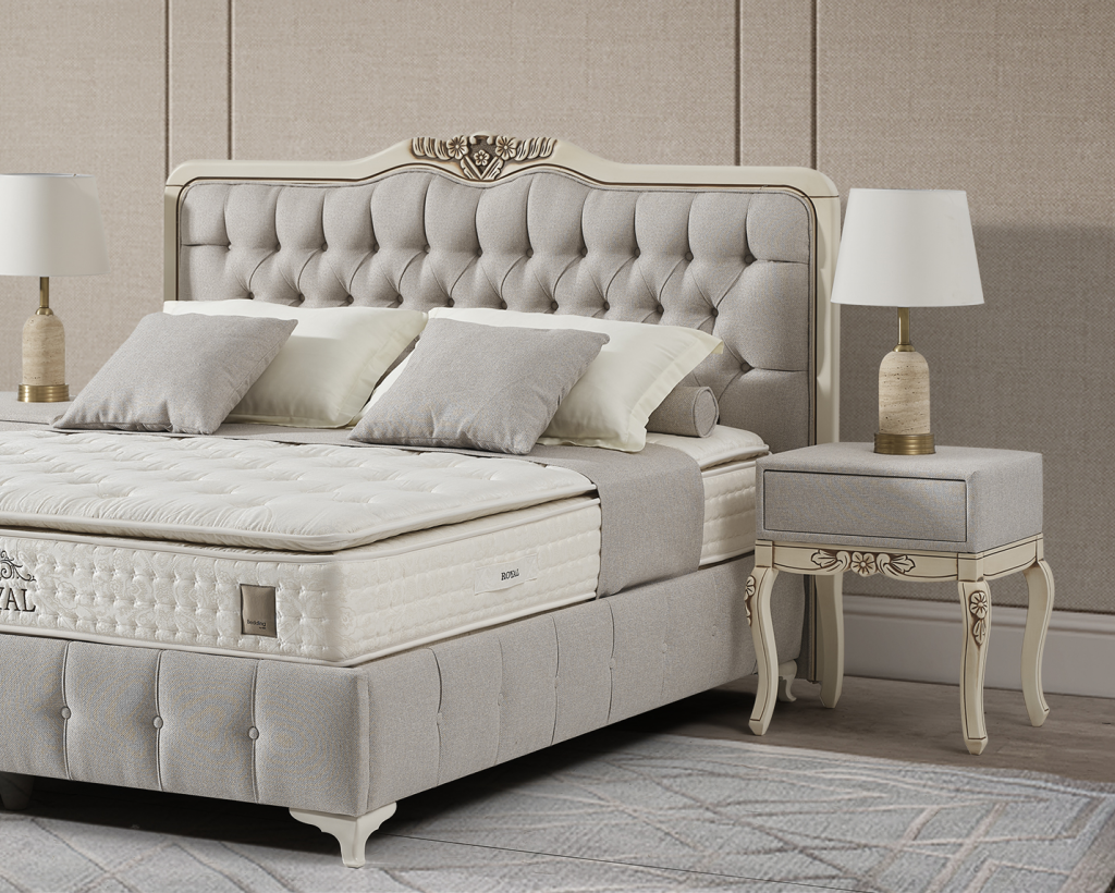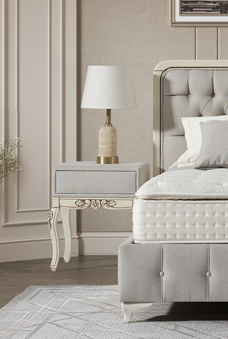 izrazit, kvaliteten in dominanten posteljni okvir GLORIA z dvižnim dnom in predalom, izdelan za hotelske potrebe svetovnih hotelskih verig visokih kategorij, zagotavlja zanesljivost in trdnost ter navdušuje s svojim dizajnom. Bogato in elegantno vzglavje ter nenavadna konstrukcija sta njeni glavni značilnosti. Višina vzglavja: 127 cm širina 133 cm .Vzglavje je dobavljivo v 1 del Iin posebaj dno postelje je dobavljivo v 1 delu, zaradi lažjega vnosa v vaš prostor; Višina posteljnega dna je 36 cm.( nogice 10 cm + box 26 cm skupaj 36 cm). Dvižno dno je kovinsko, ima trdno ravno površino, oblečeno v črno nedrsečo podlago / tkanino na katero se postavi vzmetnica. Dvižni plinski mehanizem ima dodatna varovala proti nenadnem zaprtju, ko je dno postelje dvignjeno. Postelja z dvižnim dnom nudi dodaten prostor za shranjevanje. Stabilnost postelje omogoča trdnost same baze, ki preprečuje premikanje. Postelja ima višino nogic na sliki 10 cm. V kolikor žeite pa je to možno spremeniti na 4 cm oz 7,5 cm oz.10 cm oz 12 cm. Nočna omarica dimenzije: š:50 x v 60 cm x g 40 cm za doplačilo 333 eur. Nočna omarica ima 1 predal na kovinskih vodilih. Tabure dimenzije š: 125 cm x v: 45 cm x g: 45 cm za doplačilo 299 eur