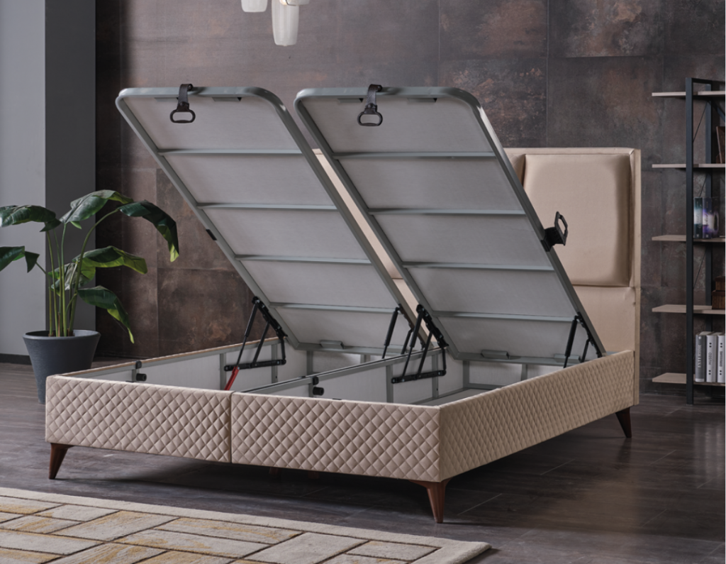 Postelja z dvižnim dnom nudi dodaten prostor za shranjevanje. Stabilnost postelje omogoča trdnost same baze, ki preprečuje premikanje.