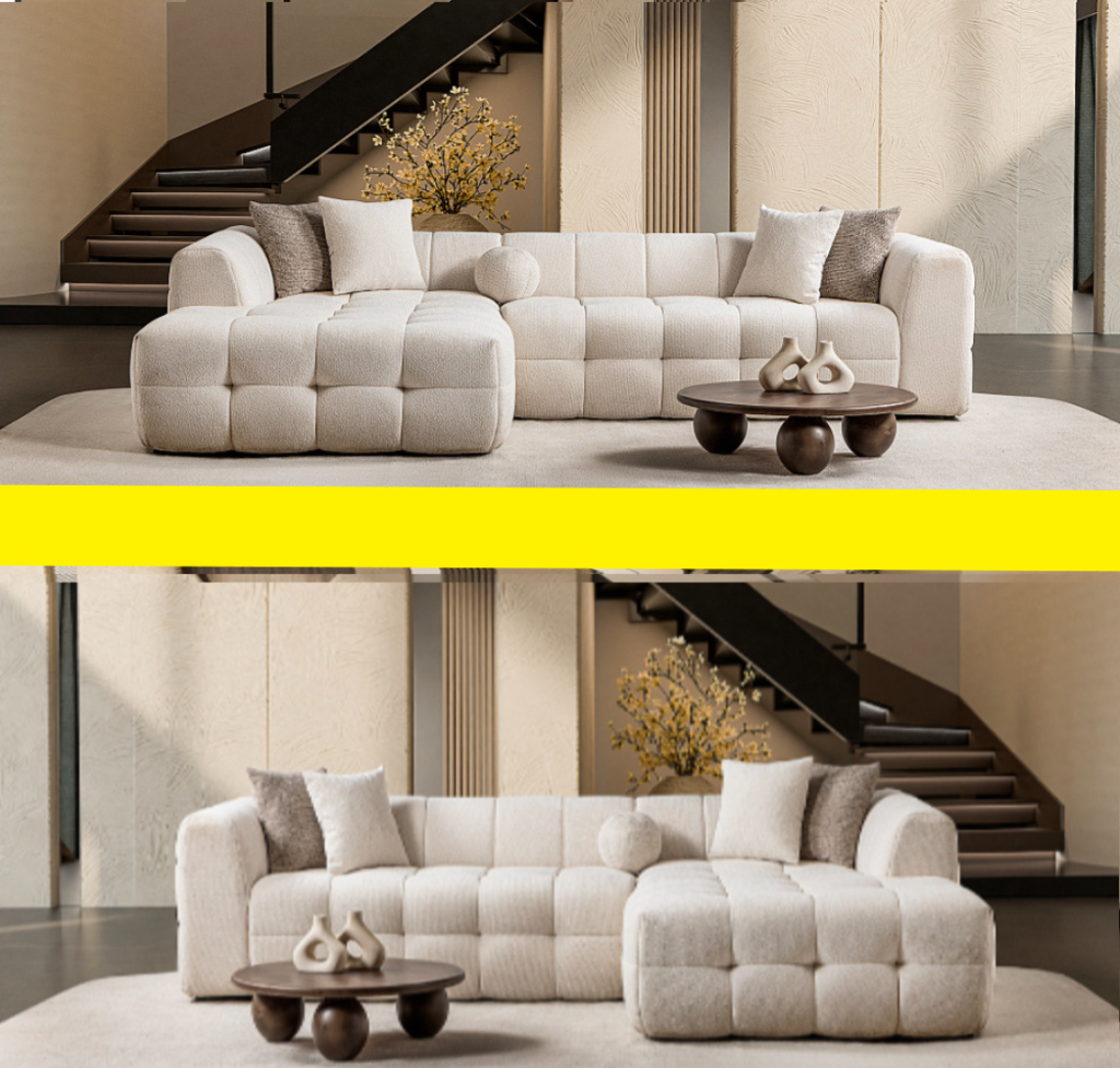 Sedežna garnitura TEDDY, bež / VZMETENO ima vzmeteno sedišče. Omogoča sproščujoče sedenje in počitek na udobnem vzmetenem sedešču-val vzmeti. Ima dodatno obdelan hrbet. S čudovito oblikovanimi rokonasloni in elegantnimi nogicami, bo v vaš prostor vnesla pridih modernega minimalizma. Sedežna garnitura ima poćivalnik širine 126 cm, globine 200 cm in višine 70 cm+ dvosed širine 174 cm , globine 103 cm in višine 70 cm.. Sedežna garnitura je sestavljena, potrebno je postavit elemente ln pritrditi nižje nogice. Višina sedišča cca 45 cm, globina cca 62 cm. Teža sedežne garniture je cca 120 kg. Sedežna garnitura je dimenzije: širina 300 cm, globina 200 cm, višina 70 cm. Dekoratvne blazine so vštete v ceno izdelka. Velika izbira barv po naročilu. Možnost naročila LEVE ali DESNE postavitve sedežne garniture.