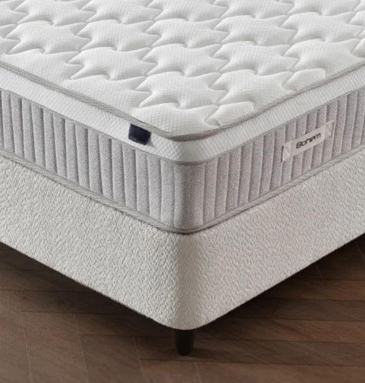 BOHEM: je ortopedska in hipoalergena vzmetnica srednje trdote, ki jo odlikuje veliko vrlin. Zaradi visoko kakovostne sestave iz bonell vzmeti, tkanih vlaken, HR pene , je prava izbira za vaš počitek. Vstreza certifikatu Oeko-Tex. V vzmetnice iz naše ponudbe je vloženo veliko ročnega dela in truda posameznika, zato so vzmetnice vrhunske kakovosti. Vzmetnica ima dodano box strukturo vzmetnice. Vzmetnica ima enostransko spalno površino. Vzmetnica ima skrbno izbaranih 12 plasti različnih materilaov, kateri nudijo odlično spalno udobje.